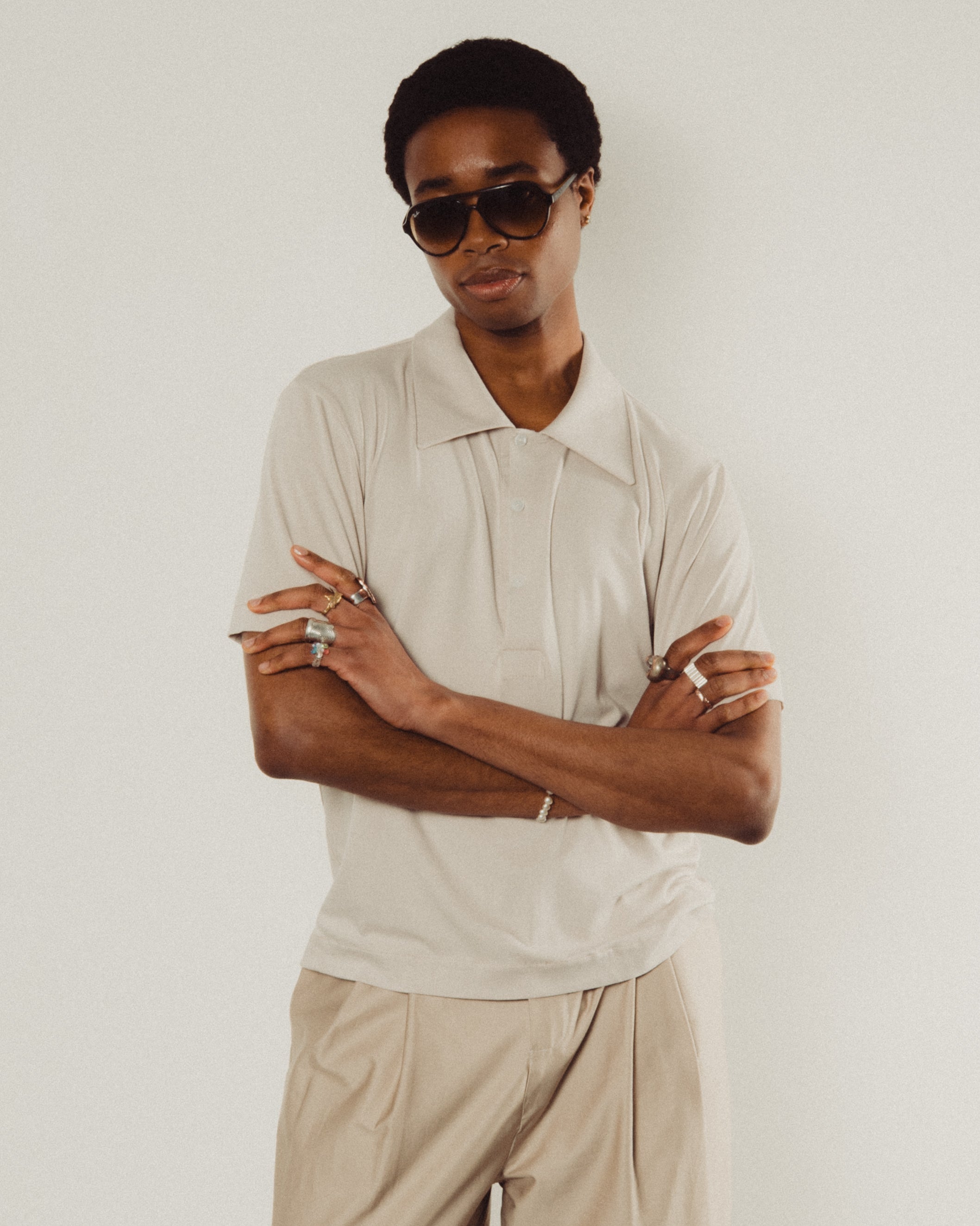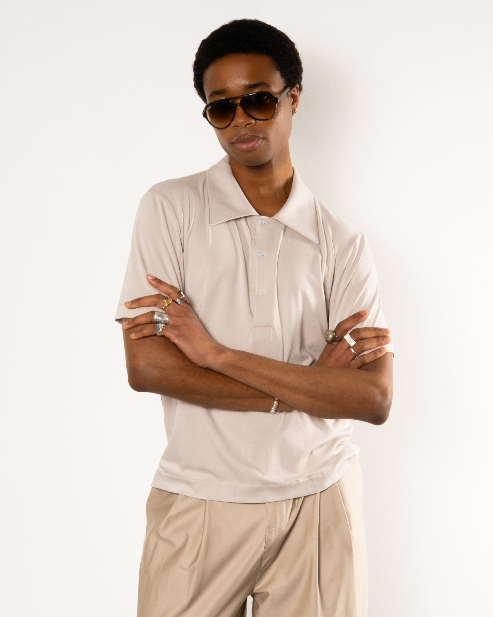 Made from a fresh, lightweight jersey, our House Polo is shaped and made to order in our Atelier. Slightly cropped, wide sleeved with an exaggerated collar.